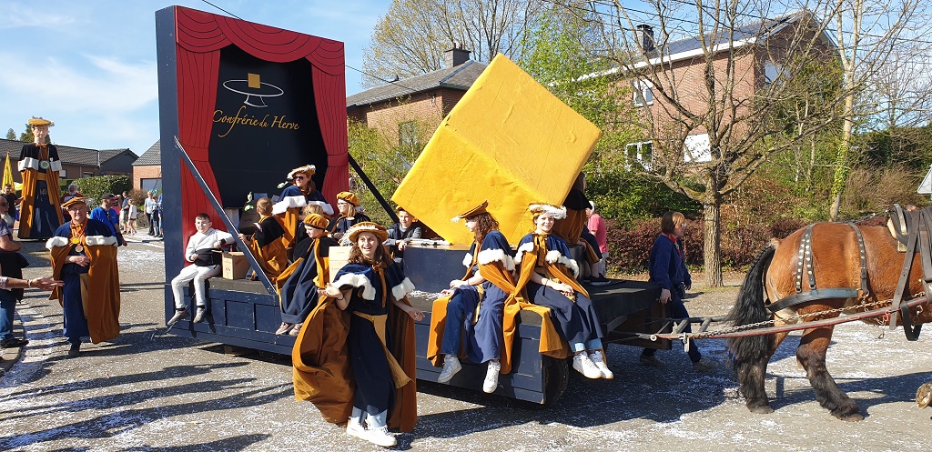 Op Paasmaandag zelf begint de grote parade traditiegetrouw in de vroege namiddag vanaf de Place Albert. Meer dan 2.500 deelnemers en zo’n 160 trekpaarden trekken door het centrum van Herve, vergezeld van harmonieën, folkloristische groepen en uiteraard de praalwagens die de kaas en het erfgoed van de regio in de kijker zetten.